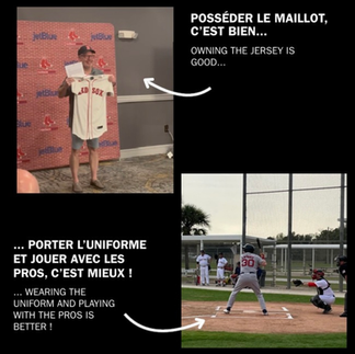 André a passé une semaine complète en Floride au Red Sox Fantasy Camp, où il s’est entraîné et a joué aux côtés d’anciens joueurs des ligues majeures, incluant des champions de la Série mondiale et d’anciens Expos. Deux matchs par jour, soins médicaux dignes des pros, cage des frappeurs, gymnase, lance-balles : l’expérience était complète.