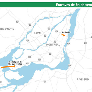 • Réseau municipal de Montréal : plusieurs fermetures locales viendront complexifier les déplacements intra-urbains.