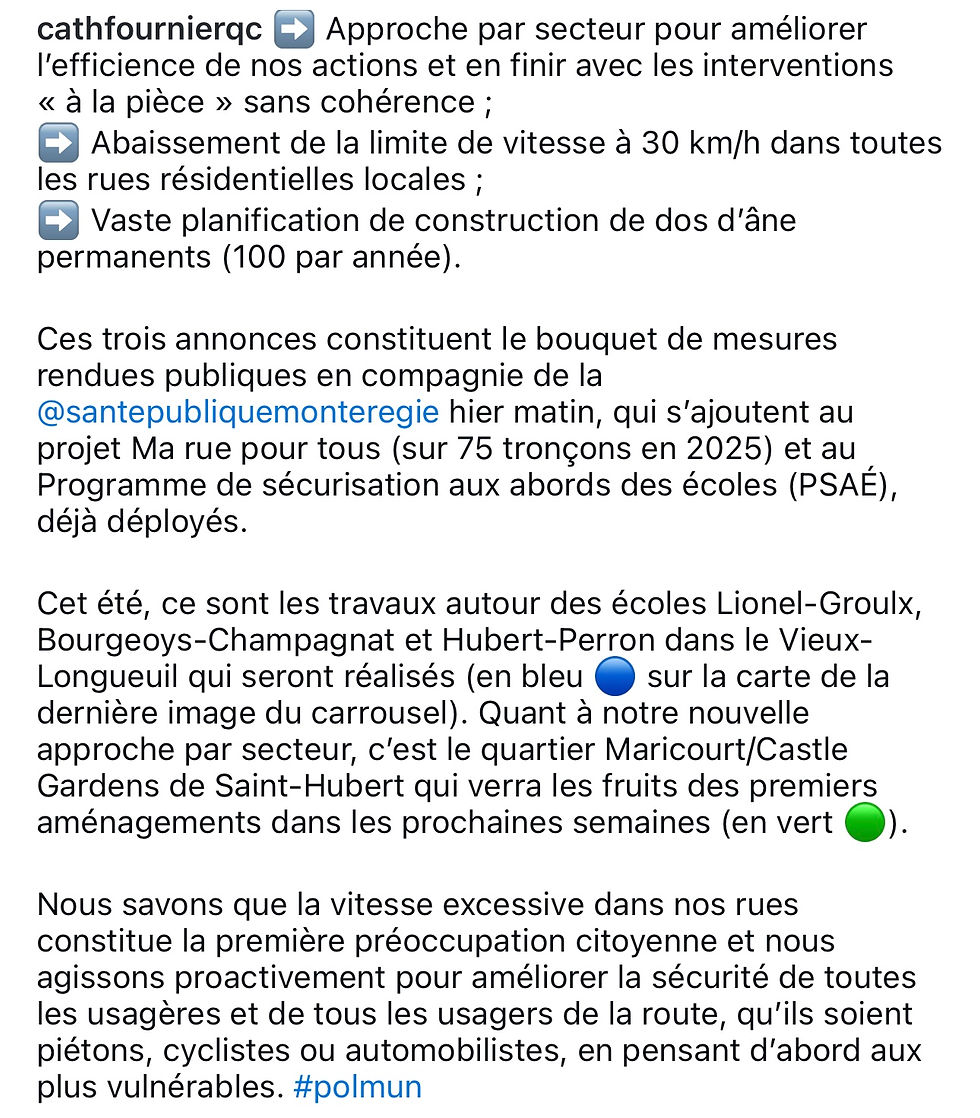 Ces annonces s’ajoutent au projet Ma rue pour tous, qui prévoit des interventions sur 75 tronçons en 2025, ainsi qu’au Programme de sécurisation aux abords des écoles (PSAÉ), déjà en déploiement.